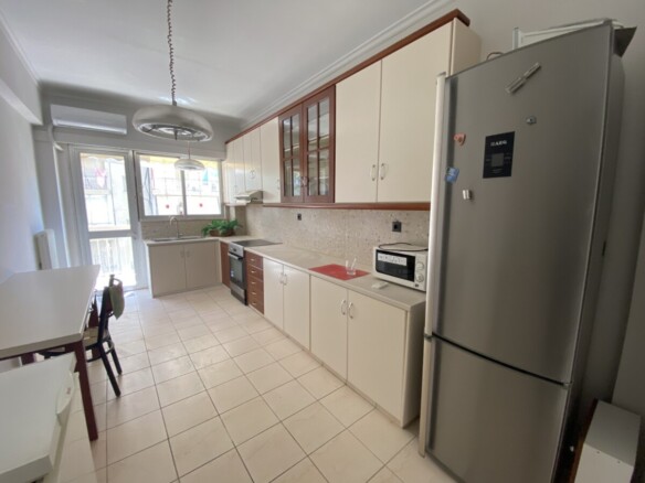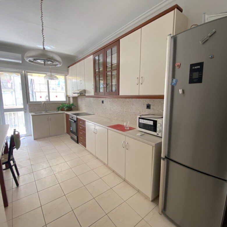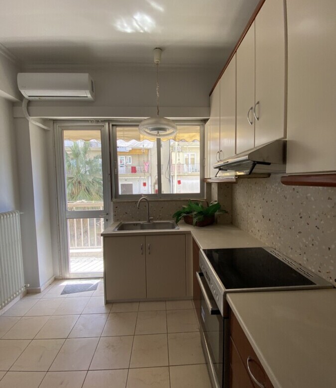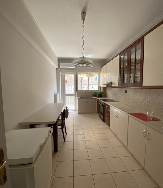 Τεσσάρι 120 τ.μ 3ου ορόφου σε ήσυχο περιβάλλον κατασκευή του 1980, ανακαινισμένο το 2026 με όλες τις σύγχρονες ανέσεις στην περιοχή Πελεκάνου δίπλα σε στάση αστικού, προαστιακού, μεγάλης αλυσίδας super market, αγοράς και παραλιακής οδού. Αποτελείται από δύο κυρίως υπνοδωμάτια, έναν ενιαίο χώρο σαλόνι τραπεζαρία μαζί με τραπεζαρία, ξεχωριστή ευρύχωρη κουζίνα, μία αποθήκη, χόλ, ένα λουτρό, ένα w.c και δυο εξώστες. Διαθέτει κεντρική θέρμανση (πετρελαίου), κλιματιστικά inverter, ηλιακό θερμοσίφωνα, κουφώματα αλουμινίου με διπλά τζάμια και σήτες, τέντες σκίασης, θυροτηλέφωνο, εντοιχισμένα ντουλάπια κουζίνας μαζί με ηλεκτρικές συσκευές (εστία, φούρνος, ψυγείο και πλυντήριο ρούχων), ντουλάπες υπνοδωματίων, πόρτα ασφαλείας, πάτωμα από μωσαικό-παρκέ, είναι πολύ φωτεινό και πανταχόθεν ελεύθερο. Τιμή: 800 ευρώ. Link: https://youtube.com/shorts/eoFgGbhMsHU