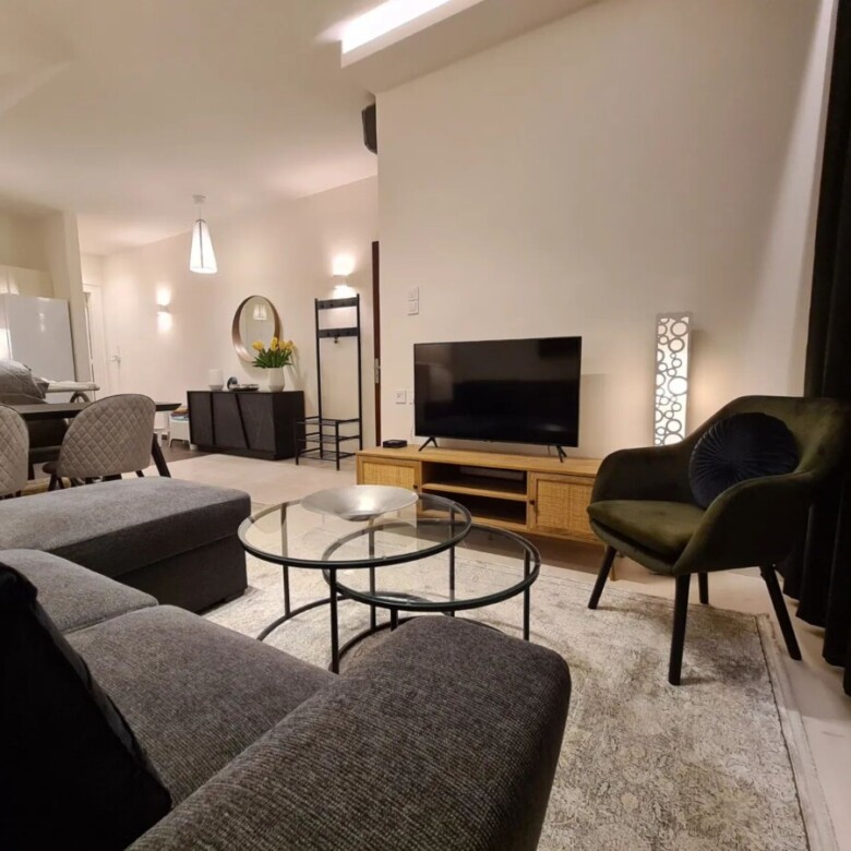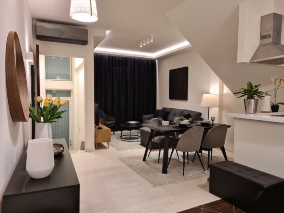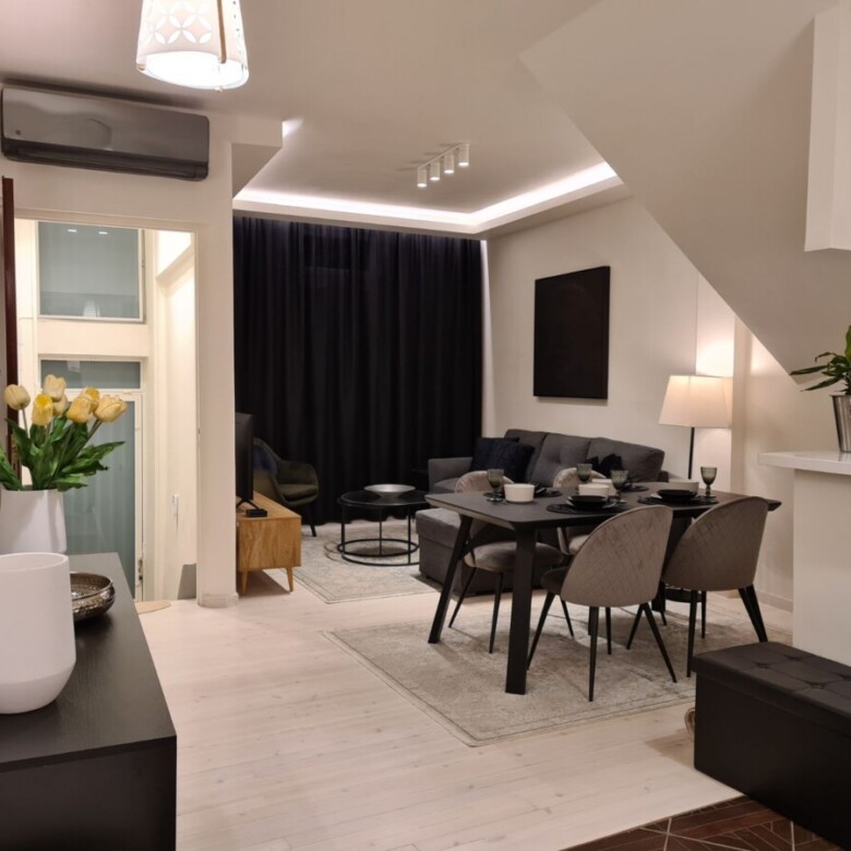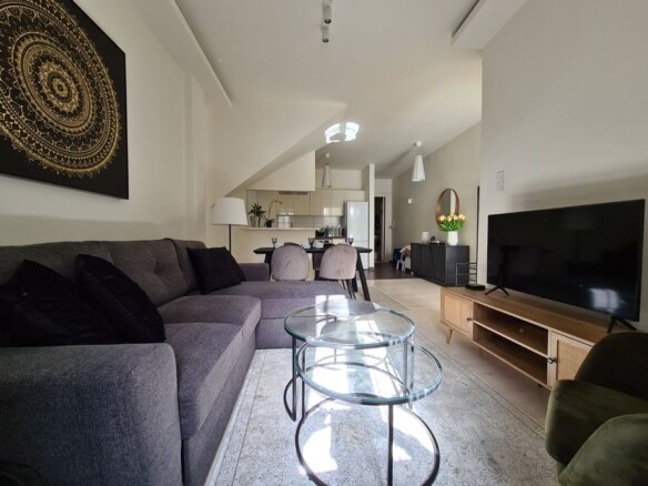 Τριάρι μονόχωρο 74 τ.μ ημιορόφου λούξ κατασκευή στην περιοχή του Κέντρου δίπλα σε στάση αστικού, προαστιακού, μεγάλης αλυσίδας super market, αγοράς και σε απόσταση 5 λεπτών από την κεντρική πλατεία του κέντρου. Αποτελείται από ένα μεγάλο κυρίως υπνοδωμάτιο, έναν ενιαίο χώρο σαλόνι μαζί με τραπεζαρία και ευρύχωρη κουζίνα, ένα λουτρό και δύο εξώστες. Διαθέτει κουφώματα ξύλινα με διπλά τζάμια, δύο κλιματιστικά inverter, κρυφό φωτισμό, εντοιχισμένα ντουλάπια κουζίνας μαζί με ηλεκτρικές συσκευές (ψυγείο, κουζινάκι και πλυντήριο ρούχων), καναπέ γωνιακό που γίνεται κρεβάτι μαζί με τραπέζι καθιστικού, ένα έπιπλο τηλεόρασης, μία πλάσμα τηλεόραση, μια τραπεζαρία με καρέκλες, φωτιστικά οροφής, ένα διπλό κρεβάτι μαζί με στρώμα, δύο κομοδίνα, δύο πολυθρόνες, ένα μποφέ με καθρέφτη, μια ανοιχτή ντουλάπα εισόδου, πάτωμα από πλακάκι και παρκέ και πόρτα με κλειδαριά ασφαλείας. Τιμή: 700 ευρώ.