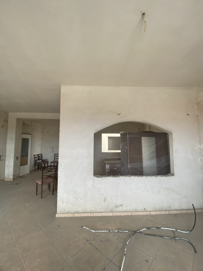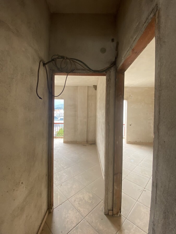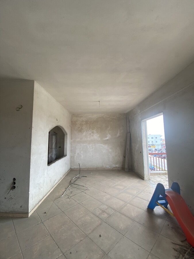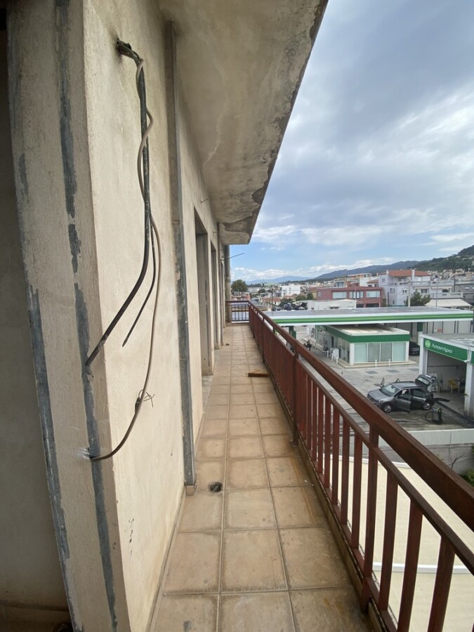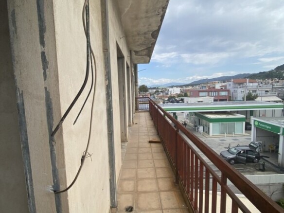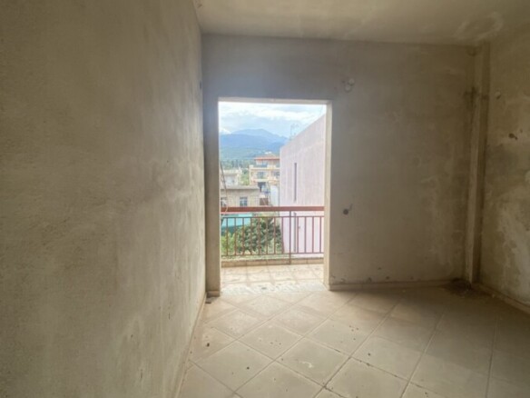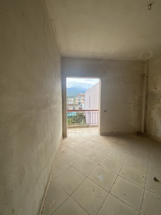 Τριάρι ημιτελούς κατασκευής συνολικού εμβαδού 95 τ.μ με απεριόριστη θέα σε διώροφη οικοδομή κατασκευή του 1976 (προσθήκη ορόφου), στην περιοχή Προάστιο δίπλα σε στάση αστικού και σε απόσταση 100 μέτρων από την αγορά. Αποτελείται από δύο κυρίως υπνοδωμάτια, ξεχωριστή ευρύχωρη κουζίνα, έναν ενιαίο χώρο σαλόνι μαζί με τραπεζαρία, ένα λουτρό και εξώστες. Τιμή: 79.000 ευρώ.